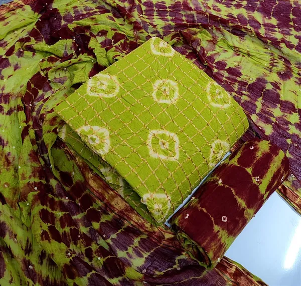 Beauty Queen Chex Pure Cotton Hand Bandhej Bandhani Dress Material