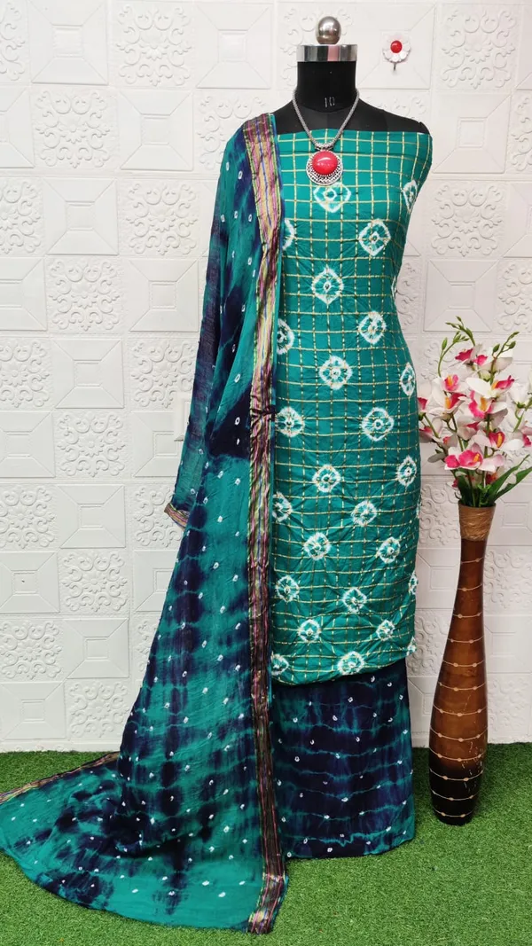 Beauty Queen Pure Cotton Chex Hand Bandhej Bandhani Dress Material