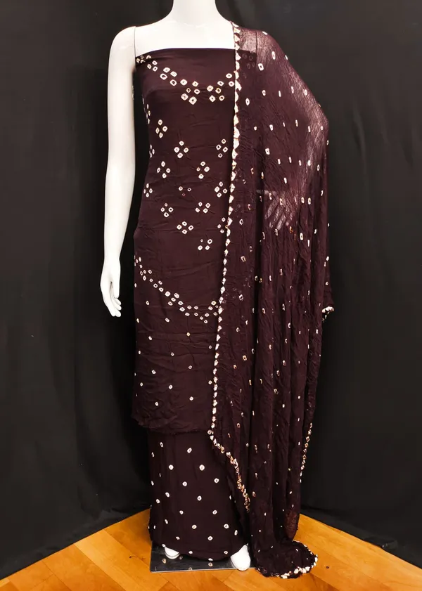 Unstitched Suit Dress Material | Kavya All Over Pure Rayon Hand Bandhej Ban..More